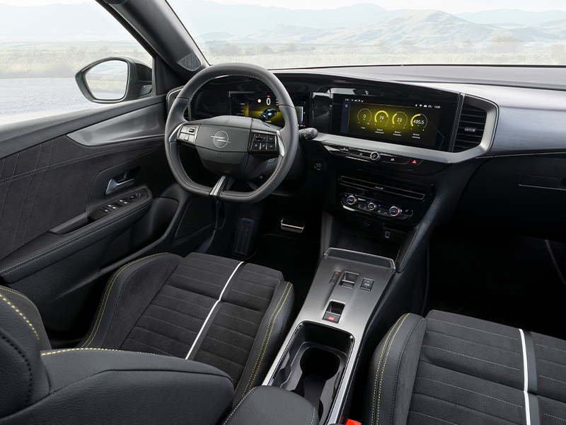- Unieke, op de Mokka GSE Rally geïnspireerde en zeer comfortabele GSE-sportstoelen met geïntegreerde hoofdsteun in Alcantara en Alcantara-deurpanelen